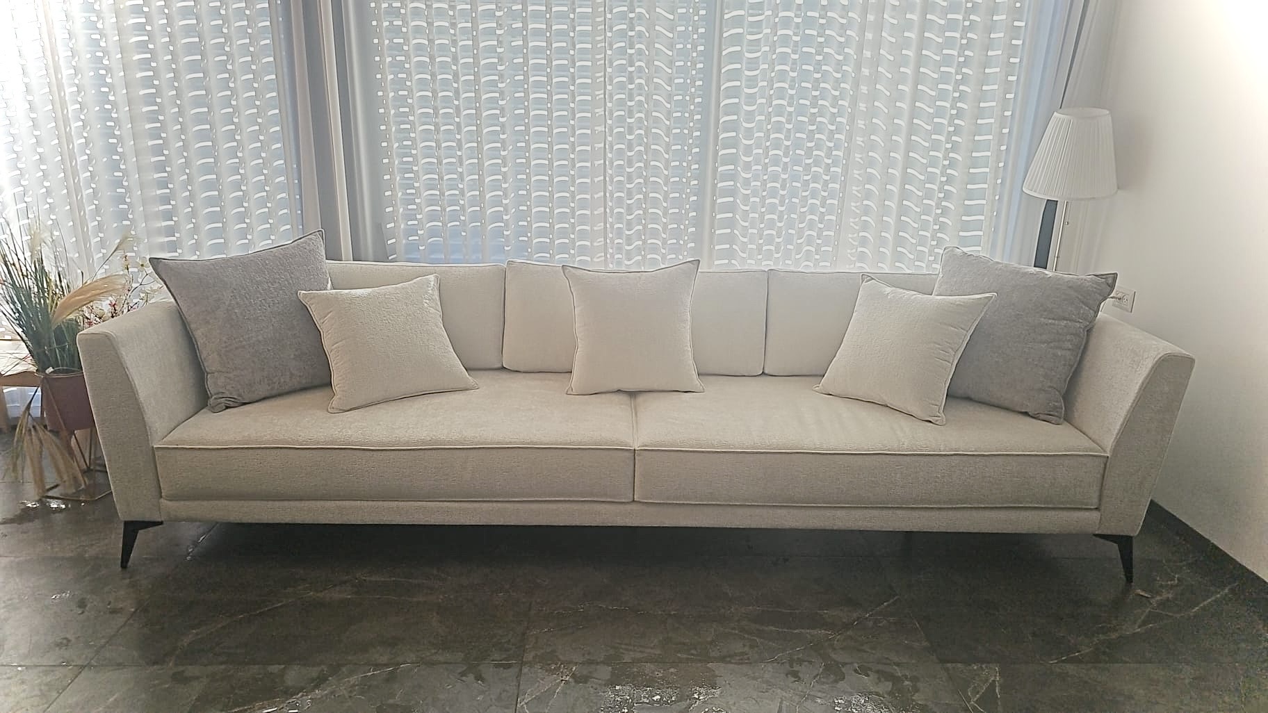 ספה עם נוכחות, עיצוב נקי וידיות שמזמינות לשבת.